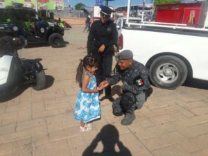 Los elementos de la Policia federal realizan la promoción para que visiten el stand, en donde las y los niños podrán escalar un muro, realizar distintas actividades que fortalecen sus valores, así como además conocerán más de nuestros equipos y vehículos.
