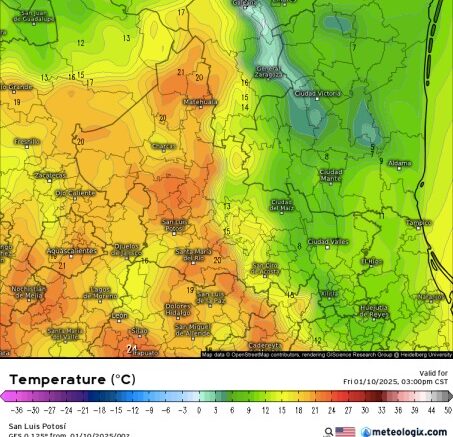 Con base en información del Servicio Meteorológico Nacional (SMN), la Coordinación Estatal de Protección Civil (CEPC), alertó de un nuevo descenso de temperaturas por el frente frío 22 y la segunda tormenta invernal, y pronosticó ráfagas de viento superiores a los 60 kilómetros por hora para este viernes en las regiones Centro, Altiplano y sierras de la región Media y temperaturas de hasta tres grados centígrados principalmente en la Huasteca y región Media.