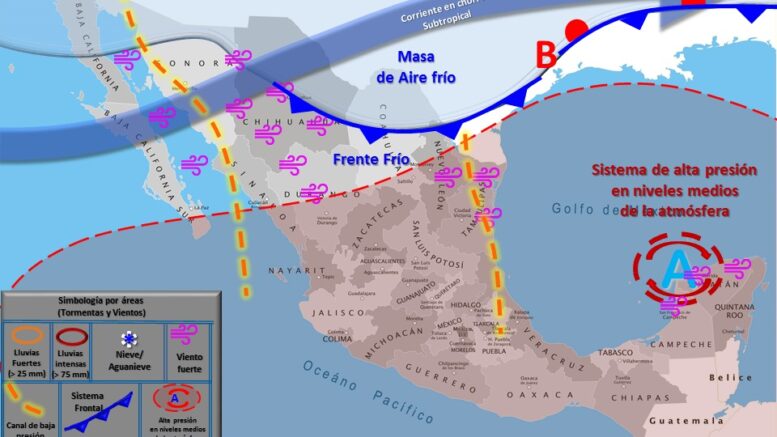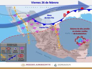 Un sistema de alta presión en niveles medios de la atmósfera cubre la mayor parte del territorio nacional, propiciará muy baja probabilidad de lluvia y el ascenso gradual de las temperaturas máximas y mínimas, provocando una onda de calor sobre entidades del occidente y sur del territorio nacional. Para el municipio de Ciudad Fernández, se esperan temperaturas de 34 grados la máxima viernes y sábados, la posibilidad de 36 grados la máxima el domingo.