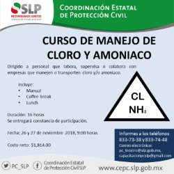 La Coordinación Estatal de Protección Civil emitió convocatoria para un curso de capacitación dirigida a profesionales y empresas que manejan cloro o amoniaco en sus procesos.