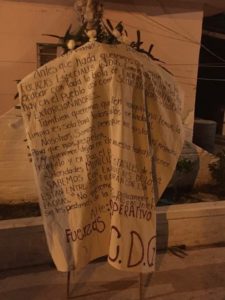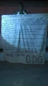 En otro hecho en la calle Aquiles Serdán y Artes de la colonia Hidalgo en Tamuín apareció una manta en la que un grupo delictivo advierte que va a hacer una “limpia” e incluso tiene identificado a servidores públicos coludidos con grupos rivales que pelean la plaza .