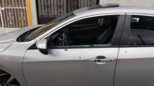 Un lesionado y varios impactos al vehículo en av de las estaciones y Guadalupe Vega Macias donde fueron las detonaciones en la carrocería.