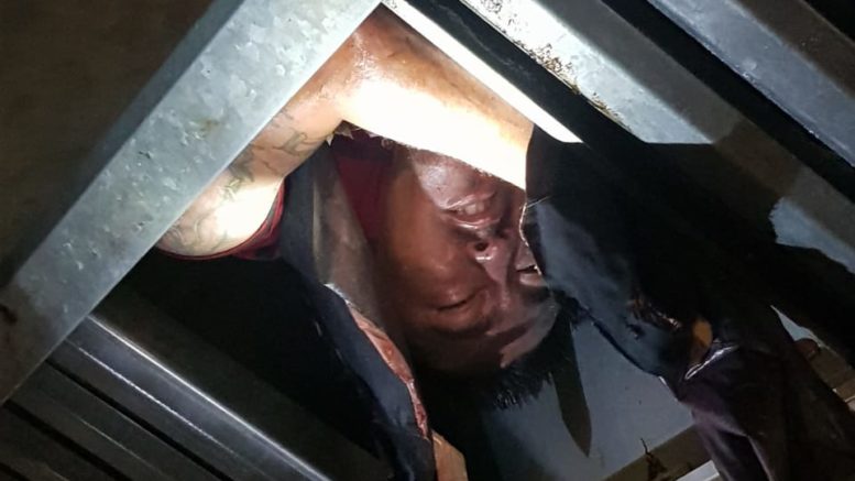 El “ratero” ingresó a las instalaciones del restaurante “La Bocana” de Himno Nacional se quedó atorado en unos ductos de aire el sujeto pretendia huir al ser descubierto lo que provocó que se quedara atorado y ya no pudo moverse.