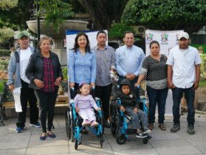 Fue esta mañana durante la realización de la ceremonia de honores a la bandera, en donde el Alcalde José Ramón Torres García, de manera conjunta con la Presidenta del Sistema Municipal para el Desarrollo Integral de la Familia, Rosa Isela Konishi Romero, y la Regidora Ma. de los Ángeles Castillo Rodríguez, realizaron la entrega de estas ayudas, que consistieron en 2 sillas de ruedas infantiles, 1 férula de pie, y 1 férula dinámica para mano, muñeca para lesión radial.