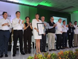 El dr. José Narró Robles secretario de salud federal hizo entrega del reconocimiento a la secretaría de salud de SLP Mónica Liliana Rángel quien recibió además el primer Lugar Nacional en Atención a la Salud.