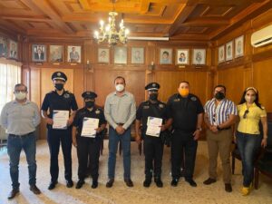 Los policías Simón Jesús Rodríguez Segura, José Armando Reyes Ledezma y Nicol Abigail González Perales, recibieron el reconocimiento por su desempeño y apoyo a la ciudadanía brindado dentro de la Dirección General de Seguridad Pública y Tránsito Municipal a quienes se les consideró importante distinguir a los buenos elementos que diariamente sirven y arriesgan su vida por la ciudadanía.