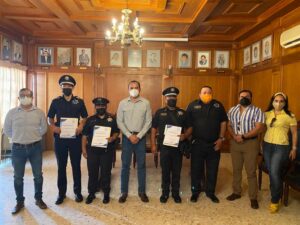 Los tres elementos de la Policía Municipal, recibieron un reconocimiento especial por parte del gobierno quienes a dos días de terminar la gestión administrativa , reconocieron a los elementos policiales como parte del trabajo cotidiano que realizan en favor d ella ciudadania.