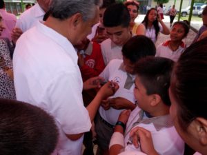 En un acto desarrollado en la cancha que techó esta administración, el Inspector de la Zona 15 de Secundarias Técnicas Antonio Walle González, hizo un público reconocimiento al Presidente Jorge Terán Juárez porque se ha trabajado mucho por la educación y es un amigo incondicional de los maestros, y de toda la comunidad escolar vallense, porque no sólo hay obras y acciones en planteles sino que además se ha enfocado a pugnar porque se brinde una educación de calidad.