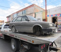 En otra acción realizada por Policías Metropolitanos, en Avenida de las Torres y Avenida Martínez de la Vega, en la colonia Arbolitos, fue localizado un vehículo Nissan Tsubame, color gris, modelo 1991, placas de San Luis Potosí, mismo que cuenta con reporte de robo del 26 de septiembre de 2017. Fue encontrado sin las llantas delanteras ni acumulador.