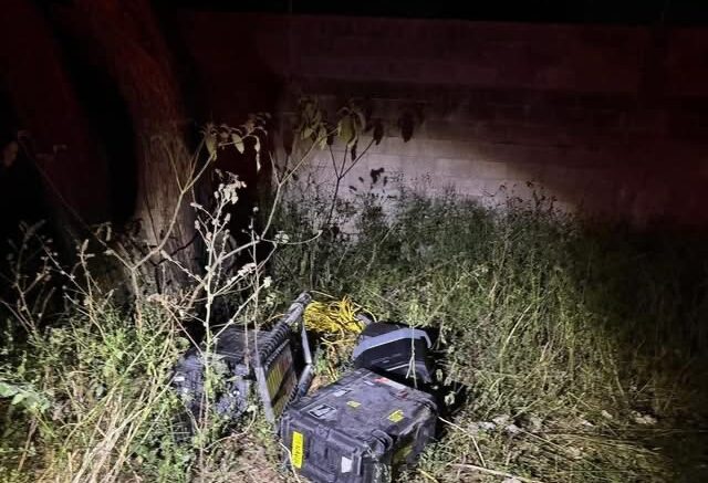 El equipo consistía en cajas negras plásticas de alta resistencia del tipo Pelican, bolsas con herramienta, extensiones industriales, celulares, una escalera y algunas prendas de vestir. Al percatarse de que estaban siendo rastreados, los delincuentes decidieron deshacerse del equipo, aunque el vehículo permaneció en su poder.