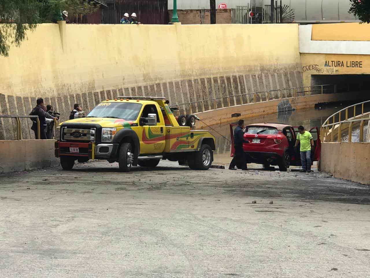 Esta mañana personal de bomberos y de la secretaría de seguridad pública del municipio llevaron a cabo el rescate de un vehículo que había quedado varado en el puente Othón .