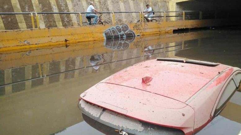 El vehículo llevaba dos días bajo el agua después que el conductor fuera sorprendido por una tormenta que trajo consigo que la unidad se parara y quedara a merced del agua el cual cubrió por completo .