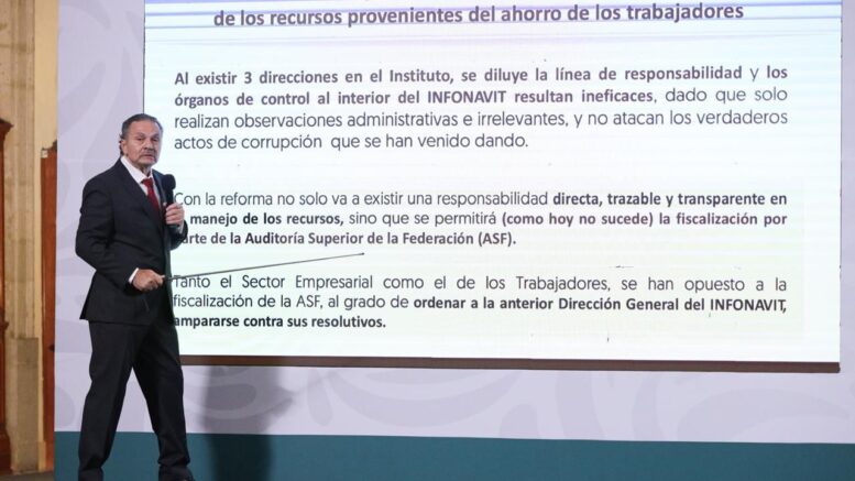 El director general del Instituto del Fondo Nacional de la Vivienda para los Trabajadores (INFONAVIT), Octavio Romero Oropeza, explicó los principales puntos de la propuesta de reforma a la Ley del INFONAVIT, durante su participación en la conferencia “La Mañanera del Pueblo”, encabezada por la presidenta Claudia Sheinbaum Pardo.