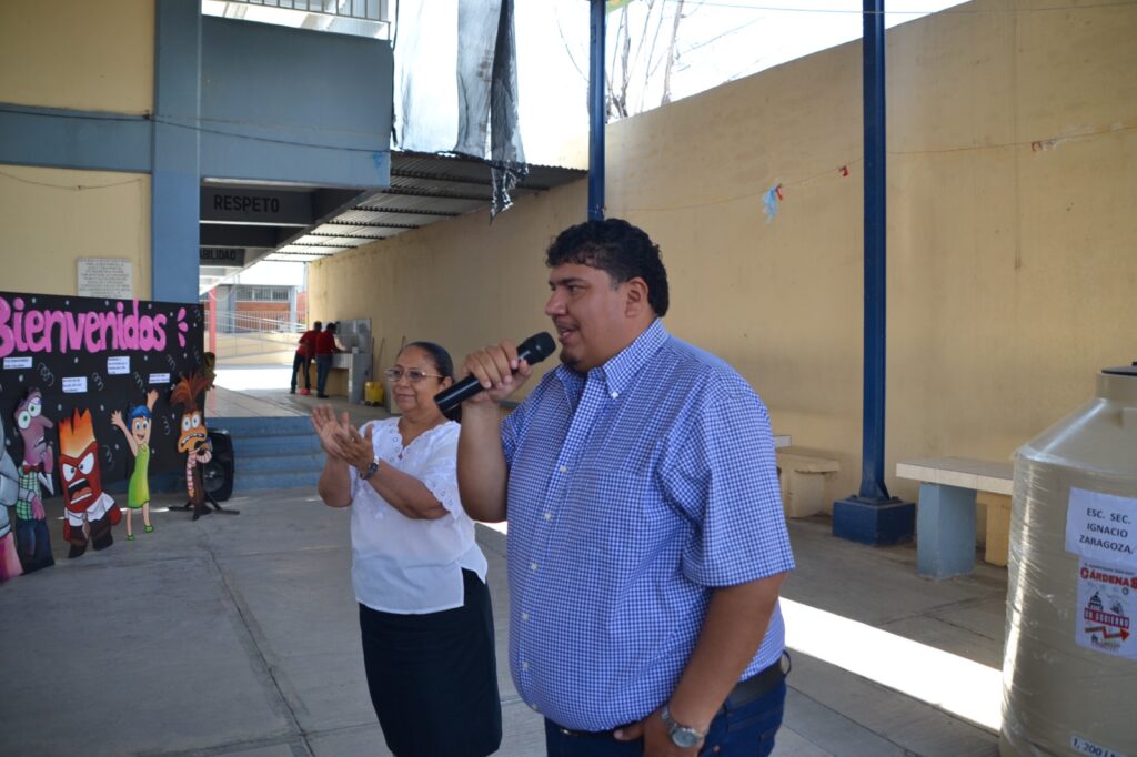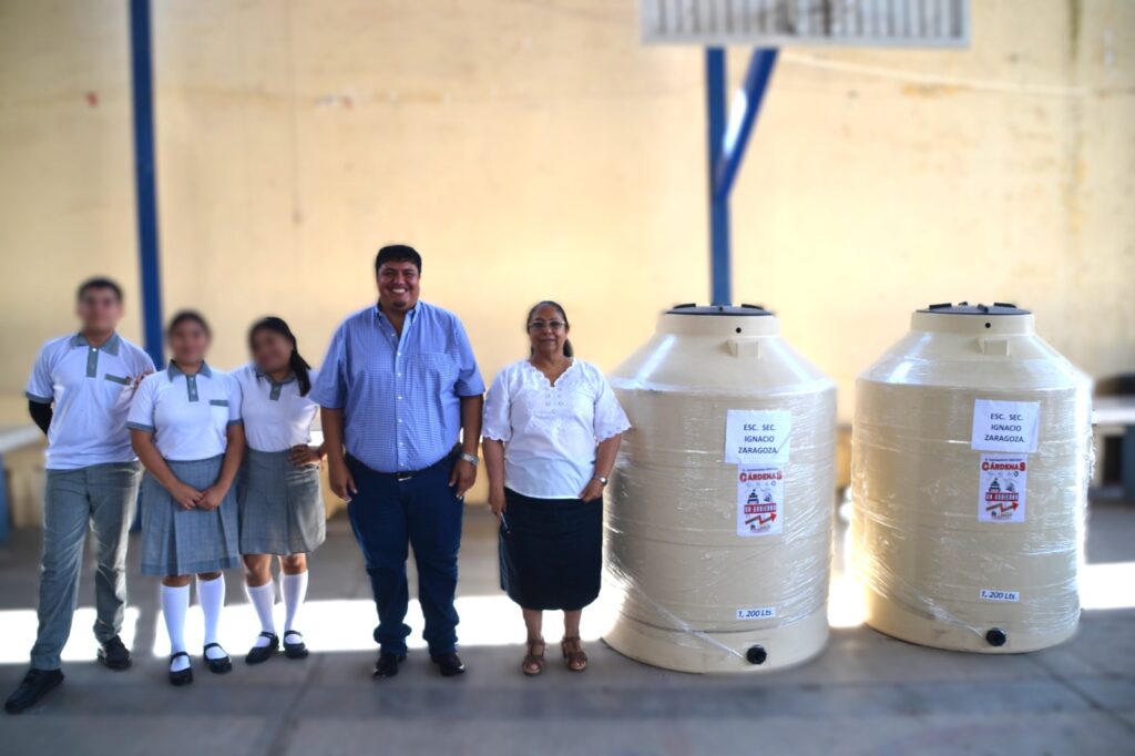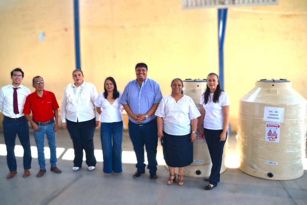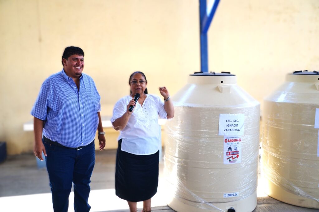 Cárdenas, S.L.P. – En un esfuerzo por mejorar la infraestructura escolar y apoyar el bienestar de las y los estudiantes, el Presidente Municipal Constitucional de Cárdenas, Edgar Miguel Hernández Aguilar, realizó la entrega de dos tinacos tricapa de 1,200 litros a la Escuela Secundaria Ignacio Zaragoza, ubicada en este municipio.