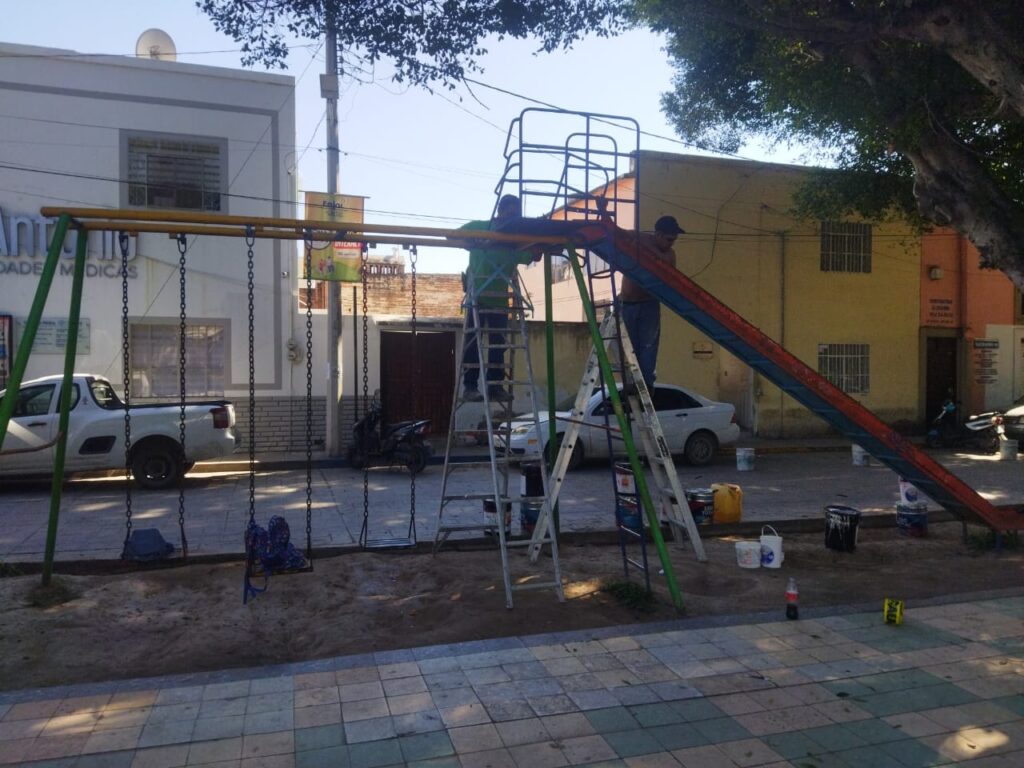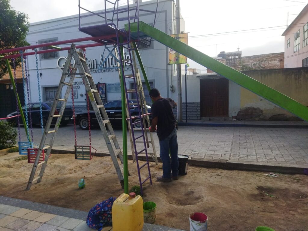 Para que los niños y niñas disfruten mejor de los juegos infantiles instalados en la plaza San Antonio, el departamento de servicios llevó a cabo el mantenimiento a los columpios así como la resbaladilla.