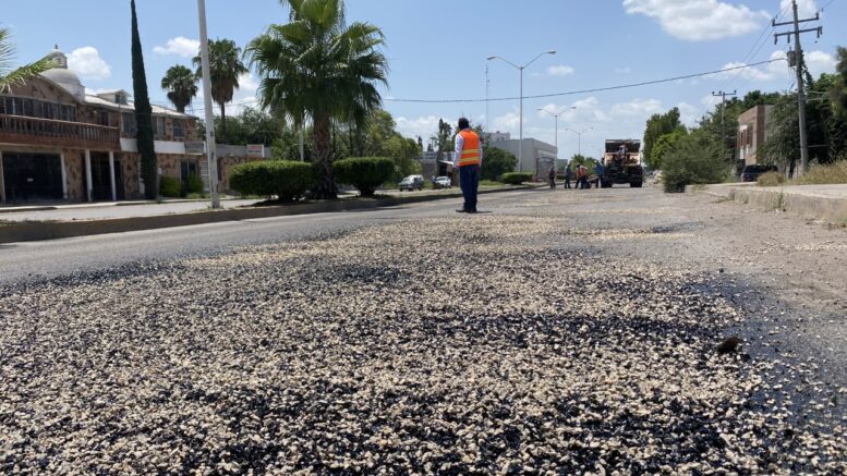 Para ello se está colocando un doble riego de sello, en el tramo comprendido del Boulevard Carlos Jonguitud Barrios, hasta su entronque con la calle Juan Miranda Uresti, dadas las condiciones deplorables en que se encontraba.