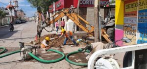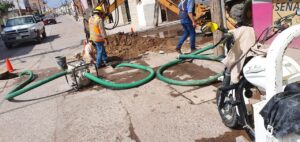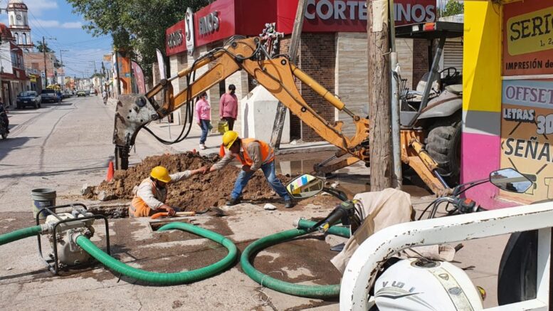 El Organismo Operador de Agua Potable SASAR está llevando a cabo la reparación de una fuga en la calle Centenario esquina con Frontera,