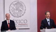 José Antonio González Anaya (izq), titular de la SHCP, durante una conferencia con medios de comunicación. A su lado el vocero de la Presidencia, Eduardo Sánchez.