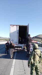 El Instituto Nacional de Migración (INM) de la Secretaría de Gobernación, en coordinación con la Guardia Nacional (GN) y policías del municipio de Galeana, Nuevo León, rescataron a 110 personas migrantes extranjeras que viajaban en la caja seca de un tráiler hacia la frontera con Estados Unidos.