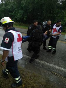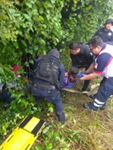 En el rescate de personas que quedaron atrapados dentro de un vehículo tipo van color blanco y que cayó a un barranco con saldo de 4 personas lesionadas con posible fractura en diferentes partes del cuerpo dicho vehículo se dirija a ciudad  Valles ,perdió control por el estado climatológico (lluvia )derrapó y se precipitó a un barranco de 10 metros de profundidad rescatando a las personas extracción del vehículo y poniéndonos a borde de carretera para la atención médica y traslado de la cruz roja.
