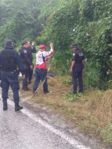 La tarde de hoy policías federales y de diferentes corporaciones policiales en abanderamiento en hecho de transito en la carretera federal 85 valles tamazunchale km 325 aproximadamente entronque la Marina.