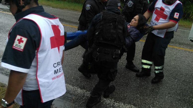 Elementos de emergencia del municipio de Ciudad Valles rescataron a cuatro personas que quedaron prensadas después que el vehículo cayera a un barranco , los hechos en el kilómetro 325 de la carretera Ciudad Valles -Tamazunchale,