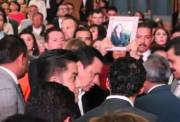Fotografía del martes 26 de julio del secretario de Gobernación, Miguel Ángel Osorio, y la canciller mexicana, Claudia Ruiz Massieu, durante una reunión con María G. Vargas, madre de Nayelly Elizabeth García, que fue secuestrada en Pachuca. 24 horas después de que la madre suplicara la ayuda al secretario de Gobernación, fuerzas de seguridad mexicanas rescataron a la secuestrada.