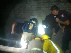 Al llegar al lugar, el hombre se encontraba bajo los escombros de una habitación de seis por cuatro metros, por lo que se implementaron acciones de rescate inmediata, retirando de los tabiques, encontrando lesionado al hombre, quien de inmediato fue trasladado al Hospital General de Matehuala, para recibir atención médica.