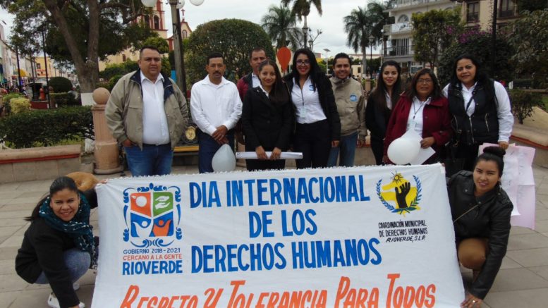Previamente se efectuó una caminata que partió desde el Boulevard Carlos Jonguitud Barrios, en donde diferentes grupos de la sociedad, entre personal de los Servicios de Agua y Saneamiento Ambiental de Rioverde; voluntariado del IMSS, funcionarios de la Presidencia y de Seguridad Pública Municipal; además de alumnos de la Primaria Oficial “Vicente Guerrero” se manifestaron, exhibiendo pancartas en donde se pronunciaron por el respeto a diferentes derechos humanos; entonando a su llegada de manera conjunta el “Himno a la Alegría”.