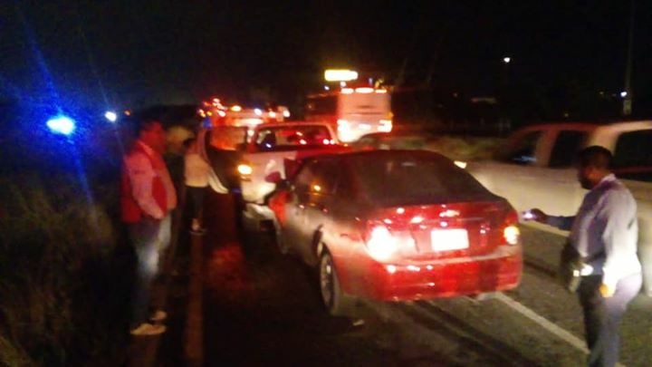 En el chique por alcance al no guardar la distancia reglamentaria, el chófer resultó lesionado cuando conducía un automóvil Chevrolet aveo contra una camioneta doble cabina de la marca mitsuishi, solo hubo daños materiales, al lugar llegaron paramédicos de la Cruz roja quienes solo valoraron a los tripulantes del aveo.