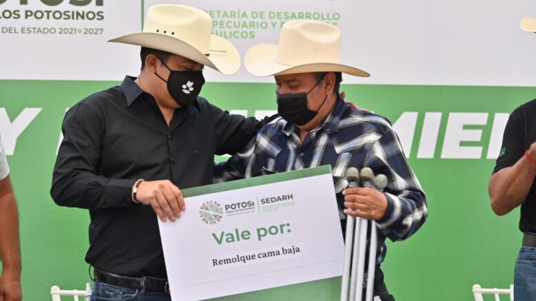 Luego de la entrega de maquinaria y equipo agropecuario en el auditorio municipal, Cipriano Ramírez Silva, de la comunidad de Ojo de Agua, también reconoció al Gobernador, porque le entregó un remolque de cama baja que le servirá para recoger la cosecha de sus parcelas, donde siembra maíz, frijol y cebada, también agradeció la entrega porque anteriormente no había apoyos y pidió que se siga mecanizando al campo, ya que es lo que necesitan los productores: herramientas para salir adelante.