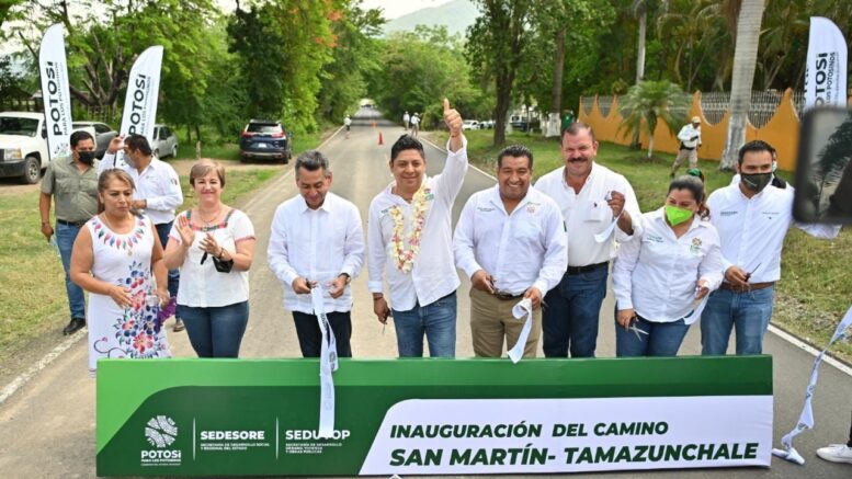 • En gira por la Huasteca Potosina, el Gobernador de San Luis Potosí, Ricardo Gallardo entregó la pavimentación del camino San Martín- Tamazunchale, con una inversión de 16 millones de pesos.