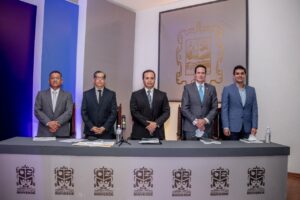 En la sesión solemne de Cabildo virtual, que para ello se llevó a cabo en las instalaciones del Instituto Municipal de Arte y Cultura, y a la cual se tuvo acceso principalmente a través de las redes sociales, en donde fué transmitida, debido a la actual pandemia del coronavirus; se contó con la presencia del Secretario de Trabajo y Previsión Social, Manuel Lozano Nieto, en representación del Gobernador del Estado, Juan Manuel Carreras López, así como del Diputado Local Ricardo Villareal Loo, en representación del Congreso del Estado y el Juez Civil Francisco Ramírez Rodríguez, en Representación del Poder Judicial.