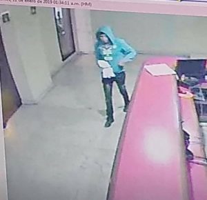 En las grabaciones de observa a una persona del tipo masculino con sudadera azul complexión delgada apróximo de unos 20 a 23 años de edad.