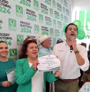 En un acto que contó con la presencia de simpatizantes y militantes, Rosa María Martínez formalizó su registro como precandidata a la Presidencia Municipal de Ciudad Fernández, San Luis Potosí, representando al Partido Verde.
