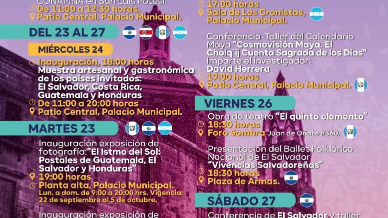 El Gobierno de la Capital presenta San Luis Potosí Capital Americana de la Cultura 2025, en la que del 23 al 27 de septiembre se presentarán países de Centroamérica que traerán sus tradiciones, cultura, gastronomía y folklore, siendo sede el Centro Cultural Palacio Municipal y la Plaza de Armas.