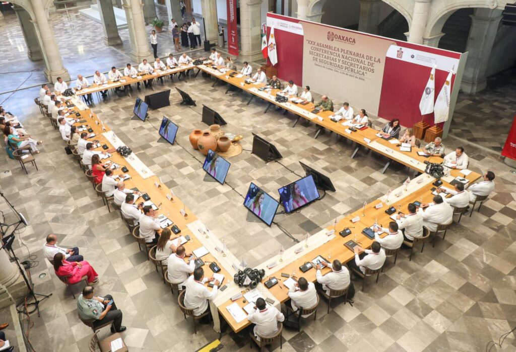 San Luis Potosí, S.L.P.- Al llevarse a cabo la XXX Asamblea Plenaria de Secretarias y Secretarios de Seguridad Pública en la ciudad de Oaxaca, la Secretaría de Seguridad y Protección Ciudadana del Estado reforzó la coordinación con las entidades federativas para continuar abatiendo los índices delictivos en la entidad, fortalecer la prevención y dar seguridad en los 58 municipios.