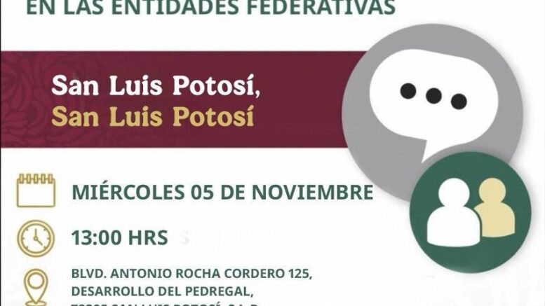 Este miércoles 5 de noviembre se llevará a cabo en la capital potosina una de las Audiencias Públicas de la Comisión Presidencial para la Reforma Electoral, un ejercicio nacional que busca abrir el diálogo ciudadano sobre los cambios propuestos al sistema electoral del país.