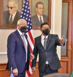 En su visita al Estado el político estadounidense reconoció a San Luis Potosí como uno de los estados más seguros de México y destacó el liderazgo del nuevo Gobierno Estatal en el tema de seguridad por la creación de la Guardia Civil Estatal.