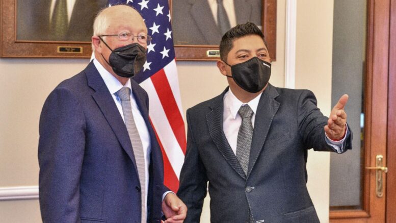 Destacó que las cifras del Secretariado Ejecutivo del Sistema Nacional de Seguridad que arrojan una disminución de homicidios dolosos de hasta un 33 por ciento en San Luis Potosí, fueron de interés para el Embajador estadounidense, Ken Lee Salazar y quien “apoyará a San Luis Potosí en el tema de inteligencia y capacitación de la Guardia Civil Estatal”.