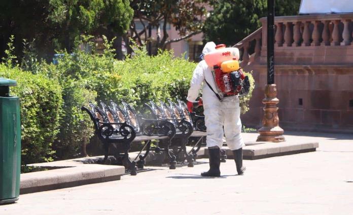 Las plazas públicas y todo aquel lugar donde la conglomeración de personas no han seguido indicaciones en quedarse en casa se están sanitizando