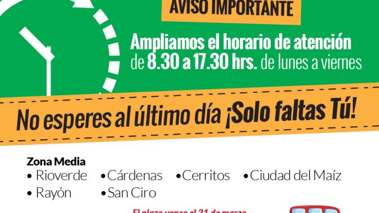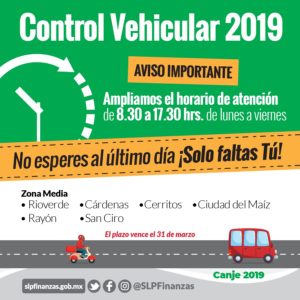 Así lo dio a conocer Daniel Pedroza Gaitán Secretario de Finanzas de Gobierno del Estado. El último día para realizar el pago será el lunes primero de abril, por lo que no habrá prórroga para el pago de control vehicular. En razón de ello se invita a la ciudadanía de los municipios de la zona media, para que aprovechen esta última semana y eviten multas y recargos.