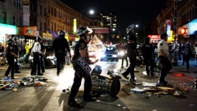 En el barrio de Brooklyn de la ciudad de Nueva York, las imágenes de video grabadas por los espectadores mostraron que un escuadrón de la policía chocó contra una multitud de manifestantes durante un segundo día de violencia después de que se realizaron más de 200 arrestos el viernes.