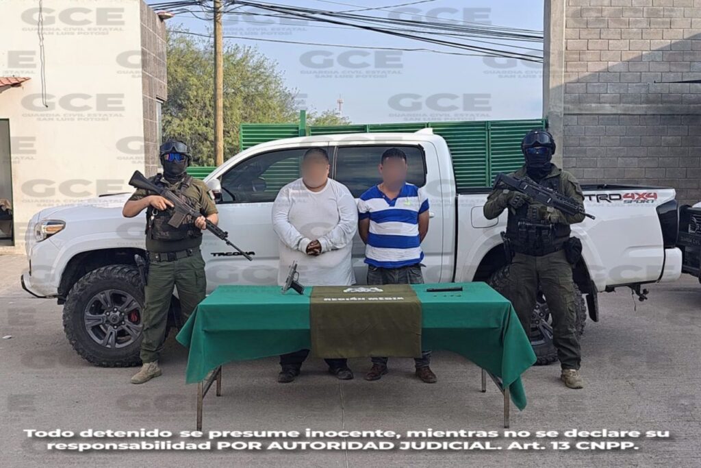 Agentes estatales han realizado acciones relevantes que contribuyen al fortalecimiento de la seguridad y la tranquilidad de las familias potosinas como el caso de la detención este pasado fin de semana de dos personas por portación de arma de fuego luego de que presuntamente realizaran detonaciones de arma de fuego en la colonia en la colonia La Victoria, municipio de Rioverde, asegurándoles un vehículo y dos bolsas de marihuana.
