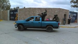 Dos sujetos fueron detenidos por elementos de la policia municipal la tarde del martes cuando en compañía de menores de edad se paseaban por las calles de la ciudad a bordo de una camioneta vestidos de sicarios