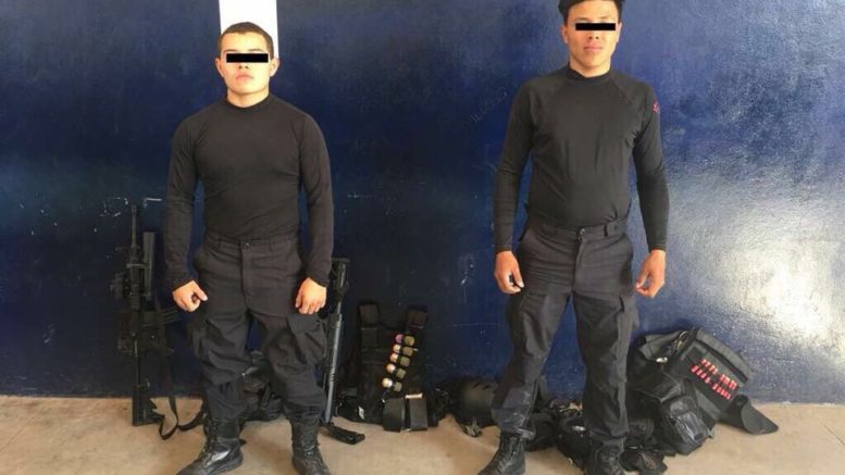 Jesus E y Jesus N de 20 y 18 años serán sancionados por falta administrativa, portaban armas, chalecos y aditamentos tipo policial; la corporación municipal atendió varios reportes sobre sujetos presuntamente armados durante la celebración de un carnaval ,vecinos señalaron la ubicación de los individuos al tiempo de manifestar su temor por la forma en la que se comportaban, inclusive a bordo de una camioneta trataban de intimidar a los asistentes, a los detenidos se les decomisó un armamento de plástico, vestimenta, mascarillas y fornituras; todos los artículos cabe mencionar son de utilería.