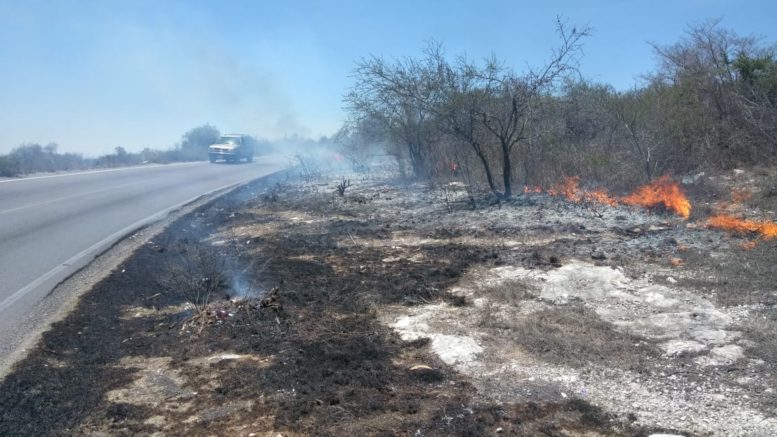 El incendio se reportó sobre el km 7 de la carretera Cárdenas-Alaquines, el cual abarcaba ambos lados, acudiendo al lugar rápidamente el Cuerpo de Bomberos y Protección Cívil de Cárdenas, no se reportaron daños humanos.