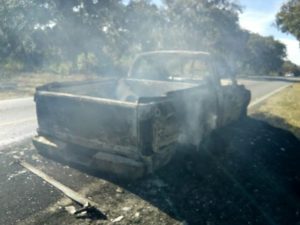 En el lugar se encontraba el particular de nombre Eustolio, de 50 años de edad, originario de la comunidad El Olivo el cual se trasladaba en una camioneta Ram blanca mod 1996 con placas TC1199C del Estado de san luis potosi la cual ya estaba calcinada casi en su totalidad.