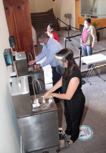 Juárez Córdova puntualizó que el personal y las ciudadanas y ciudadanos que acudan al Congreso del Estado, tendrán que cumplir con las medidas preventivas sanitarias, como son: Verificar la temperatura que no podrá ser superior a los 37.5 grados centígrados, lavado de manos, uso frecuente de gel antibacterial, el uso de cubrebocas al ingresar al edificio y durante toda la estancia.