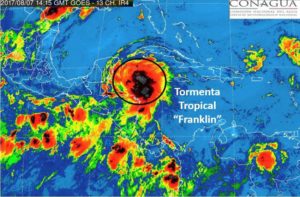 Ayer se desarrolló la tormenta tropical Franklin en el Océano Atlántico.